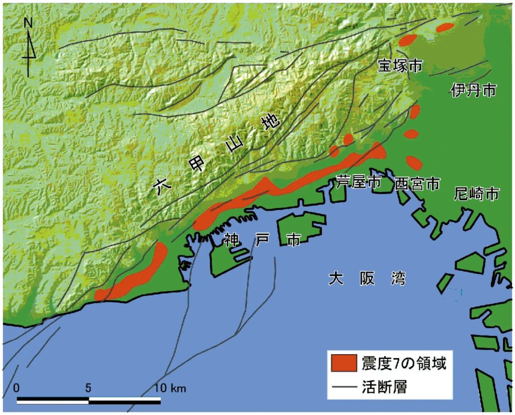 兵庫県南部地震の際に見られた「震災の帯」(地震本部HPより)